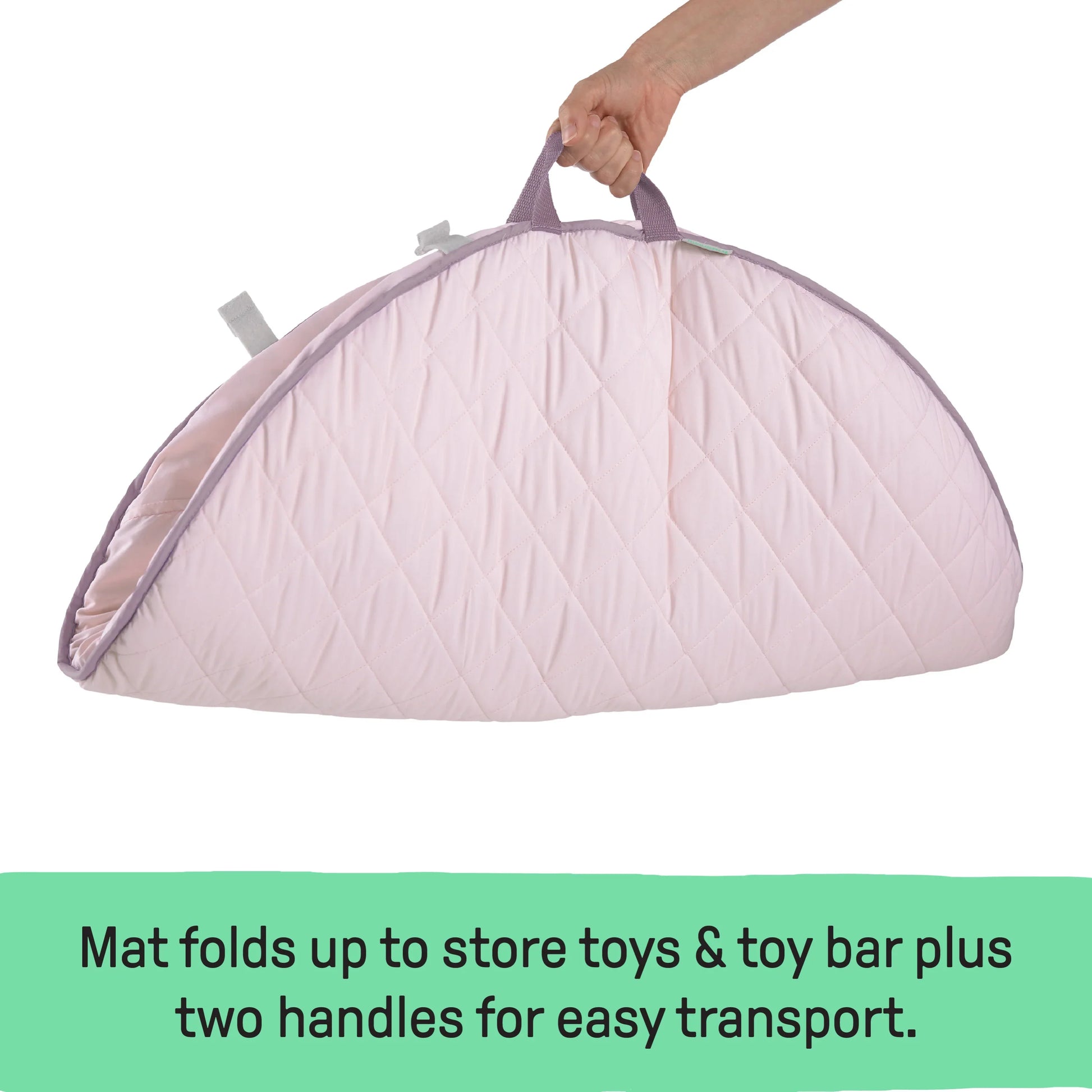 - Patented design; SlimFold wooden toy bar folds easily and quickly; mat features 2, built-in handles to allow parents to fold and hold all elements for easy storage or to take baby’s favorite spot on the go