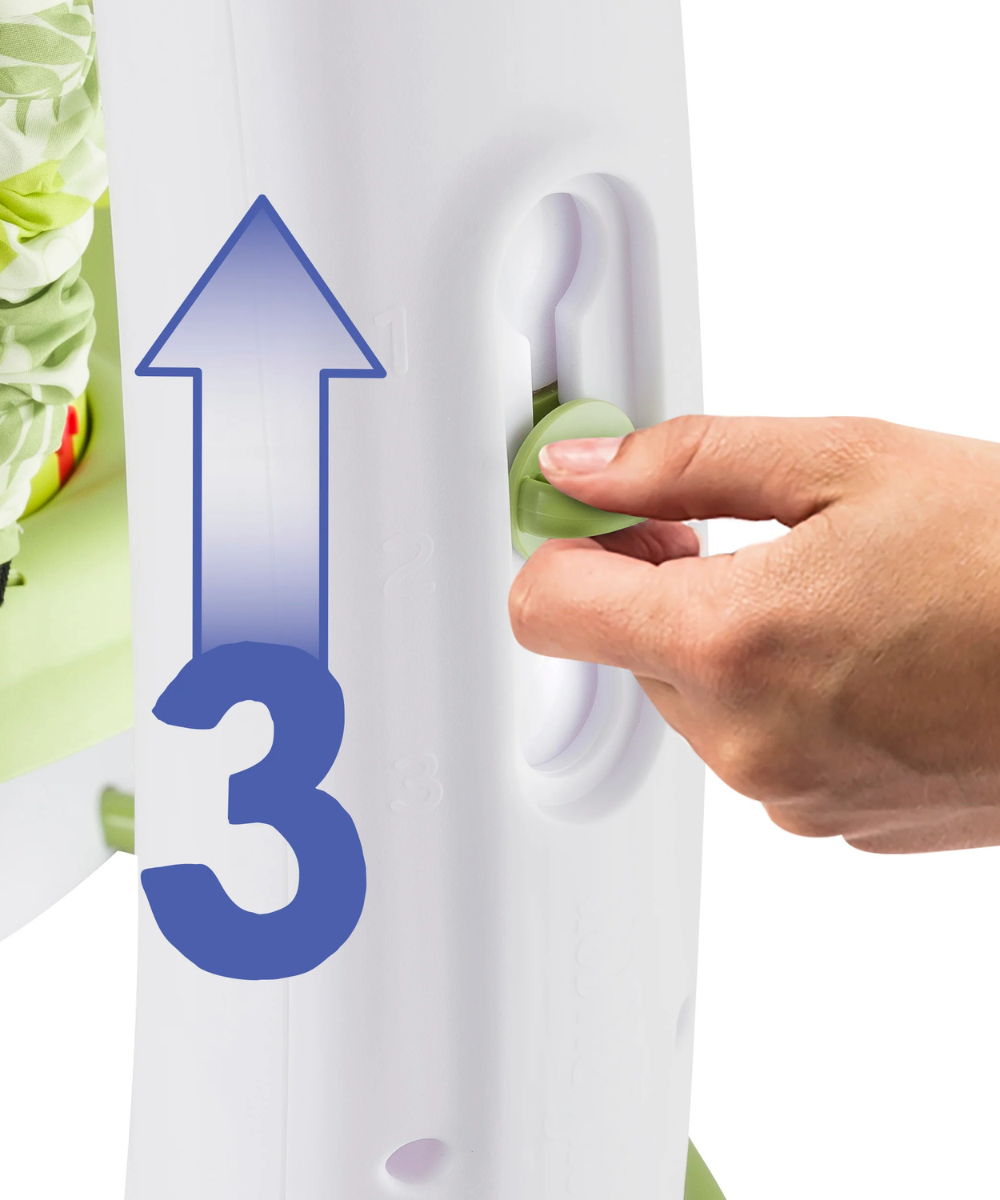 Lights and animal sounds will take your baby on a safari trek, and the ABC flip book lights up when baby turns the pages. The soft removable monkey can go with baby on all of their little journeys. Minimum Age: 6 Months. 360 degree seat spin, 15+ activities, lights, sounds and nature inspired colors and patterns.