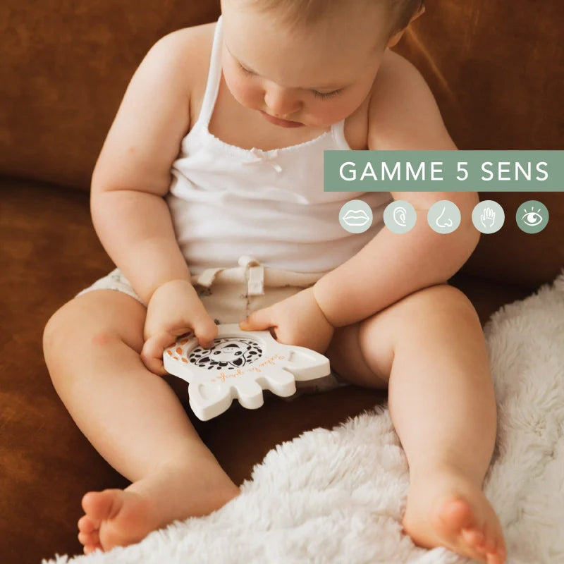 Evolutionary, this mirror is composed of a frame made from 100% natural rubber and 4 interchangeable lensesto develop baby's eyesight as the months go by: