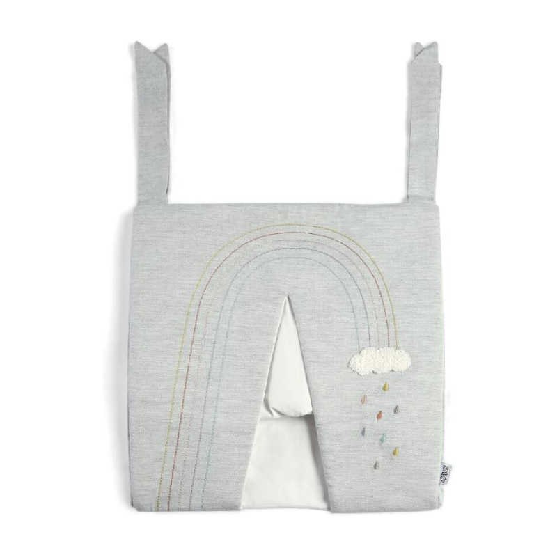 Make sure all of baby’s nappies are organised and neatly stowed away with this handy nappy stacker. With its simple tie handles, it’s perfect for quickly grabbing a nappy when you have your hands full. Designed to co-ordinate with our Dream Upon a Cloud interiors range, it’s been finished with soft emboridered cloud and rainbow detailing.