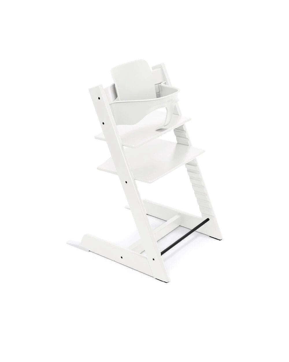 This ingenious chair lets you include your child in life around the table. This evolving chair for babies and children is designed for optimum comfort and durability. It is made from high-quality wood and features an adjustable seat and footrest to suit the child's size. This high chair is designed to enable the child to sit at table height with adults, promoting social interaction and healthy eating habits. It can be used from birth with the addition of a Tripp Trapp baby accessory. The highchair is easy to clean and is available in a range of colors to match your home décor, while its adjustable design allows you to follow your child as he or she grows. In fact, the chair is compatible with numerous accessories to provide support for the youngest, and can be used even in adulthood, by parents for example.