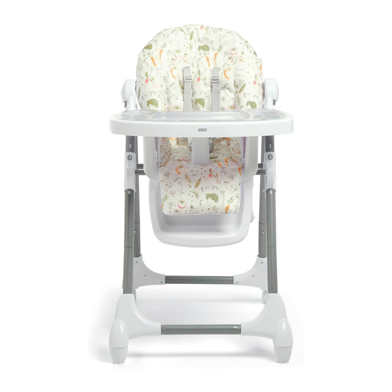 Composition: Seat - PP; Seat Pad (Outer) - PVC Coated Fabric; Seat Pad (Filling) Polyester Fibres; Tray - PP; Foot Rest - PP; Legs - Steel; Joints - PP; Feet - PP; Wheels - PP; Decorative Mouldings - ABS; Harness - 100% Polyester; Buckle - POM