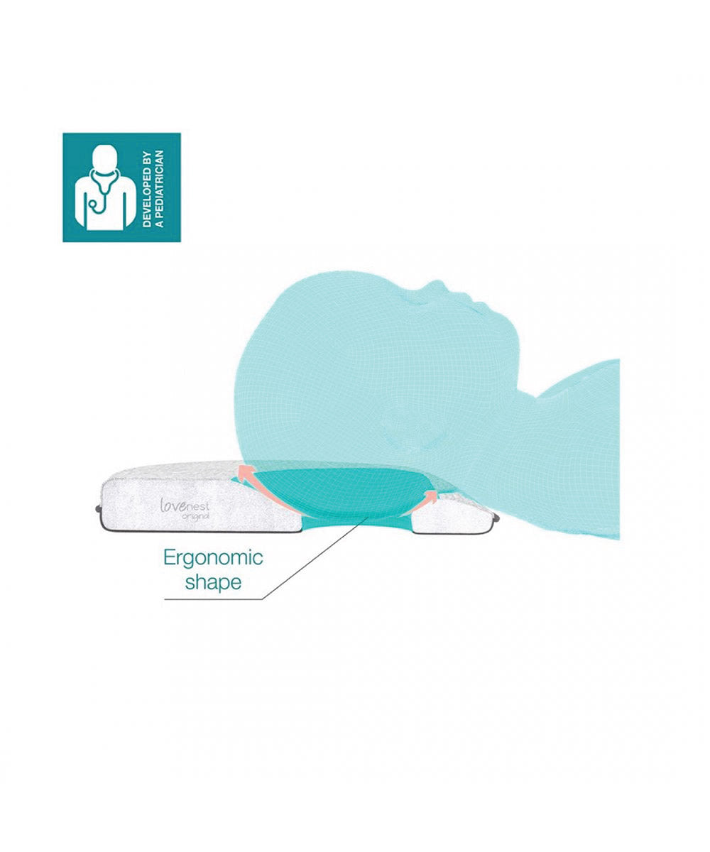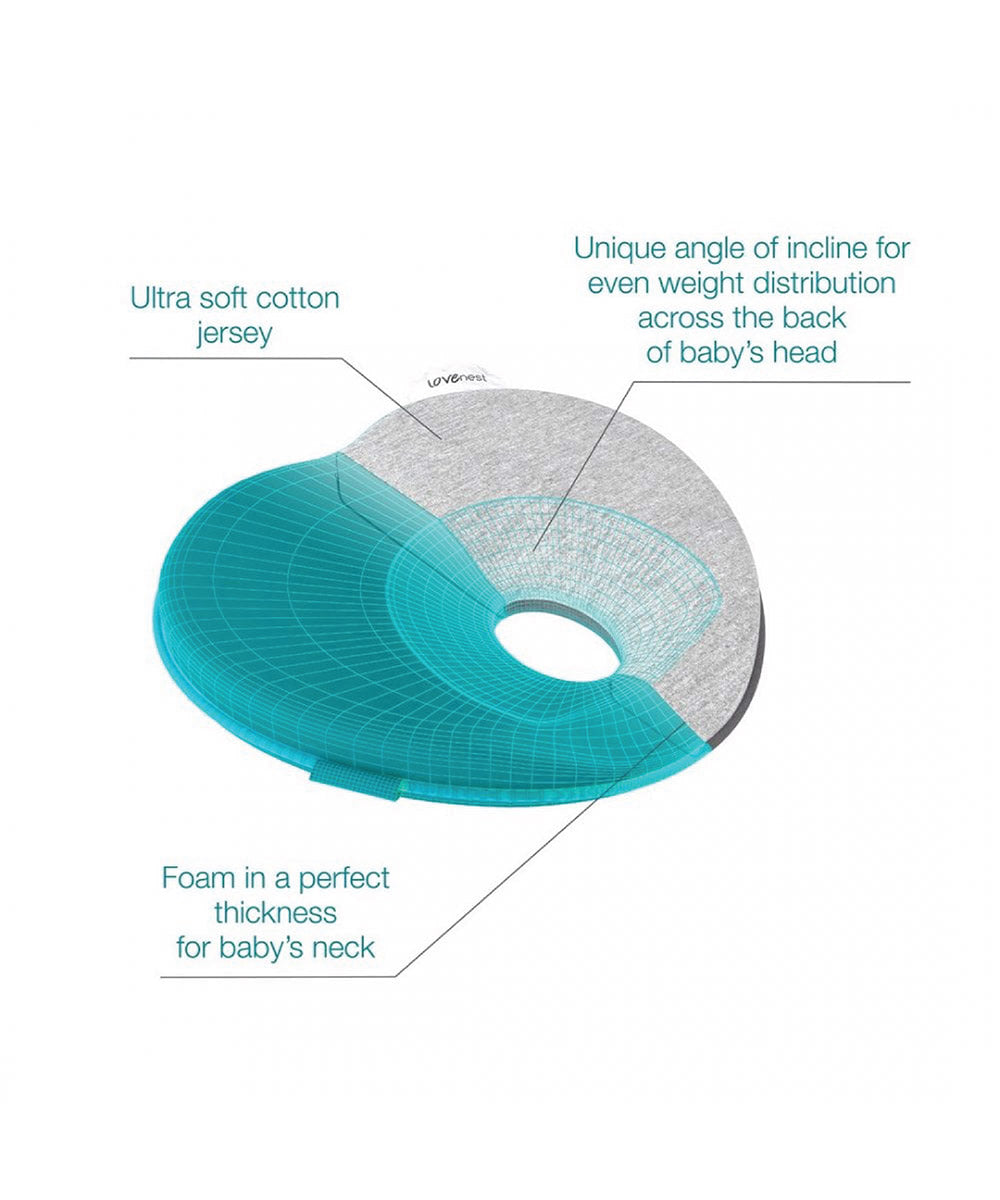 - Ergonomic Shape: The Lovenest Headrest features a patented design that keeps the baby's head in the correct position and ensures even pressure distribution, which is important for preventing flat-head syndrome.
