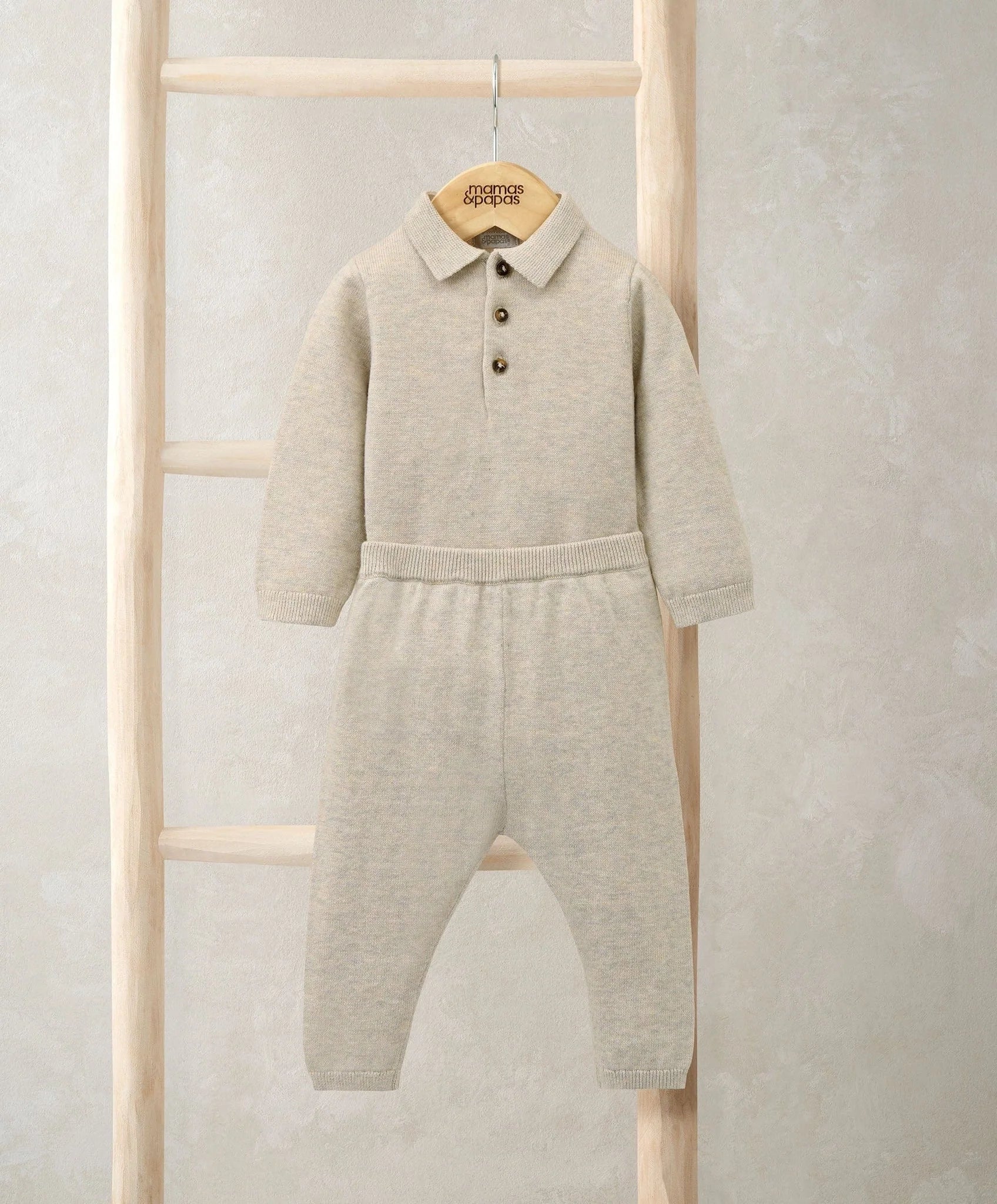 This soft, oatmeal two-piece knit set is perfect to keep them snug and stylish on dressier days.