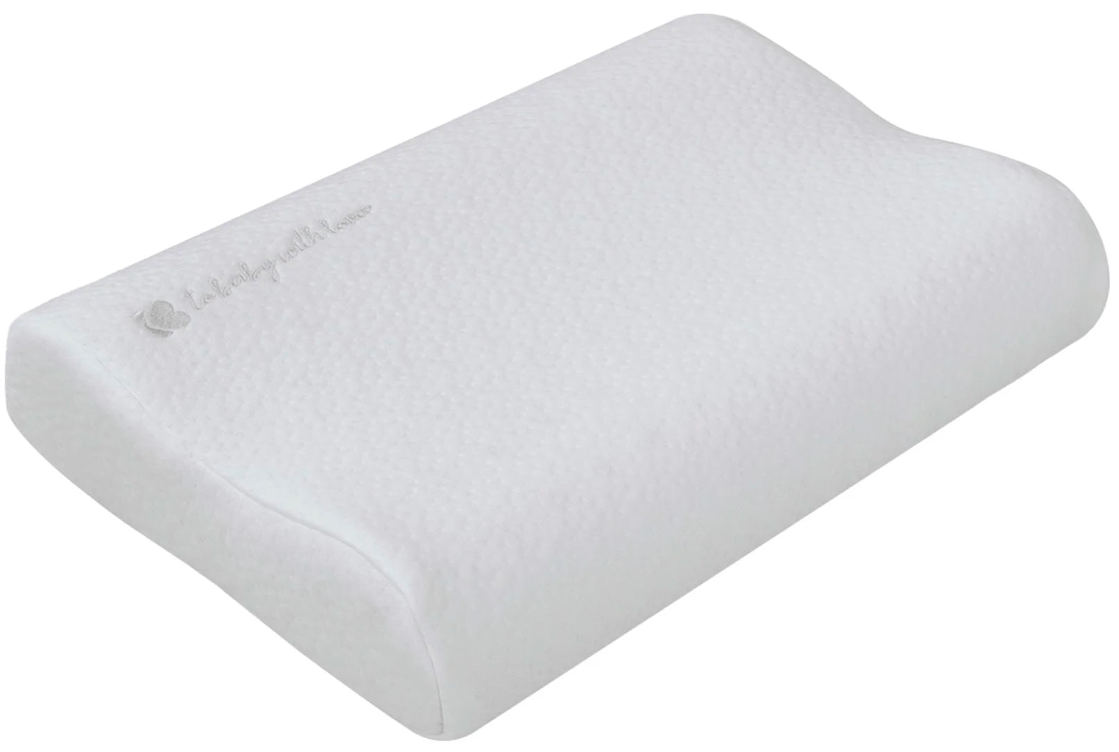 The Kikka Boo Memory Foam Ventilated Pillow in white is crafted from soft memory foam with a premium dot-patterned material, designed specifically for babies aged 0-12 months. It features a removable pillowcase with a zipper for easy cleaning and ventilated memory foam filling that promotes better airflow and reduces moisture retention. The pillow showcases a luxury embroidered detail, with a cover made of 100% polyester and filling made from 100% polyurethane memory foam. This pillow comes in luxury gift box packaging, making it an ideal gift for new parents.