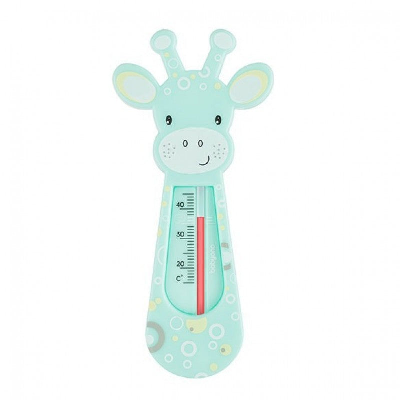Adorable floating giraffe bath thermometer for safe water temperature checks.