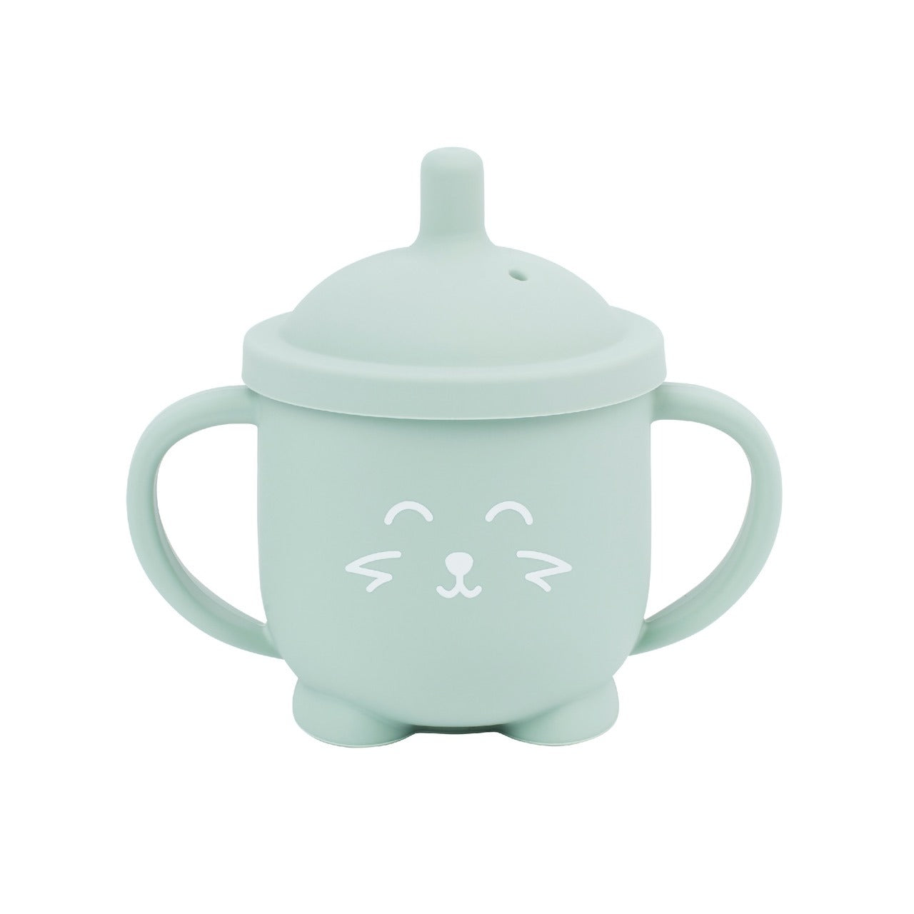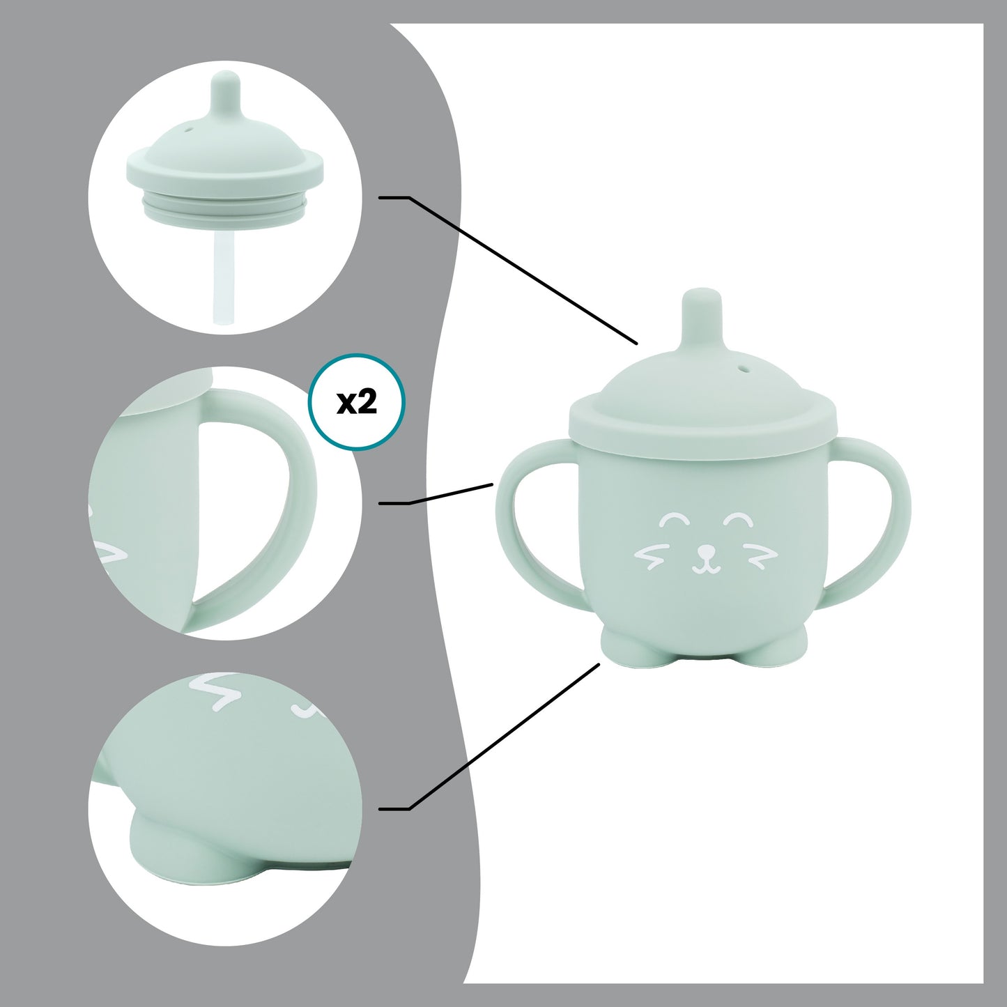 With two handles, a removable airtight lid and a built-in straw, this cup is designed specifically to help young children learn independence. This silicone cup is lightweight and durable. It provides a better grip for your little one. It has two small legs for better stability.