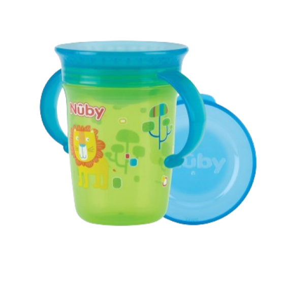 The 360° Wonder cup with handles by Nûby™ is especially developed to smooth out the transition between a cup and a drinking glass. Your child will enjoy drinking from the 360° soft rim of this cup.