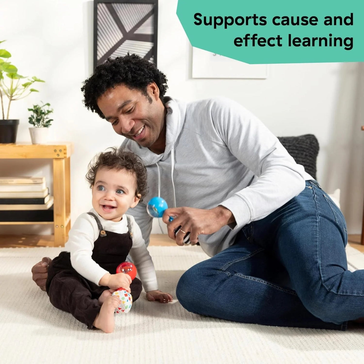 - Easy to grasp design helps baby build fine motor skills as they hold and shake each instrument; Supports cause and effect learning and musical expression through play