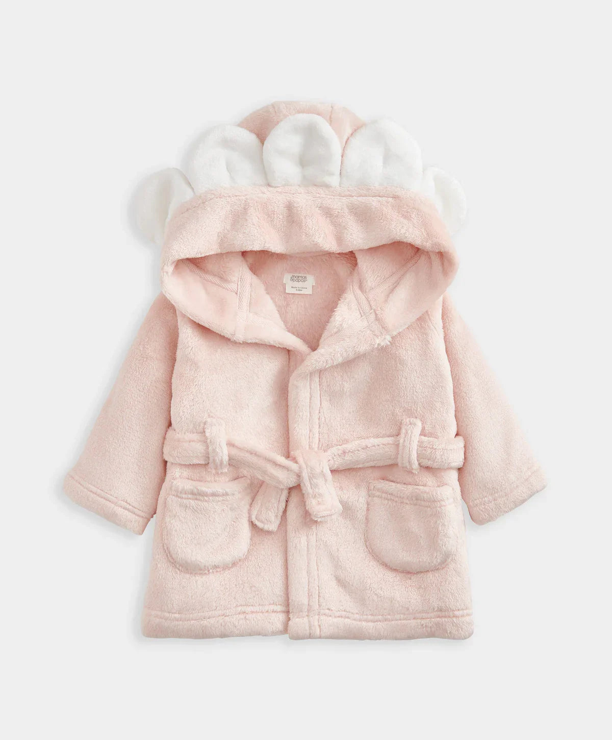 Super soft faux fur dressing gown with daisy petals on the hood.