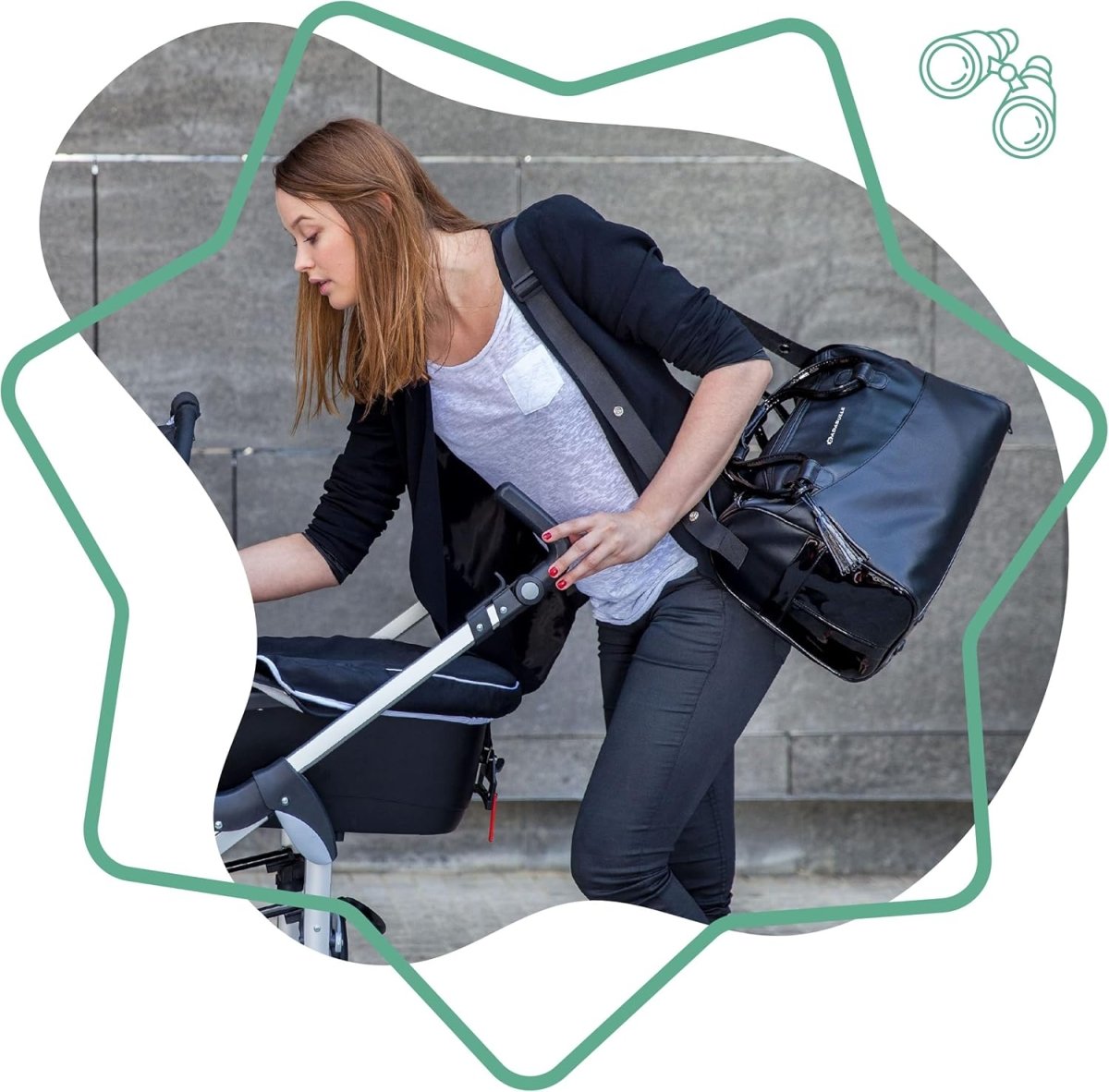 - Very complete: Insulated bottle pocket, changing mat, small transparent pocket, soother pouch