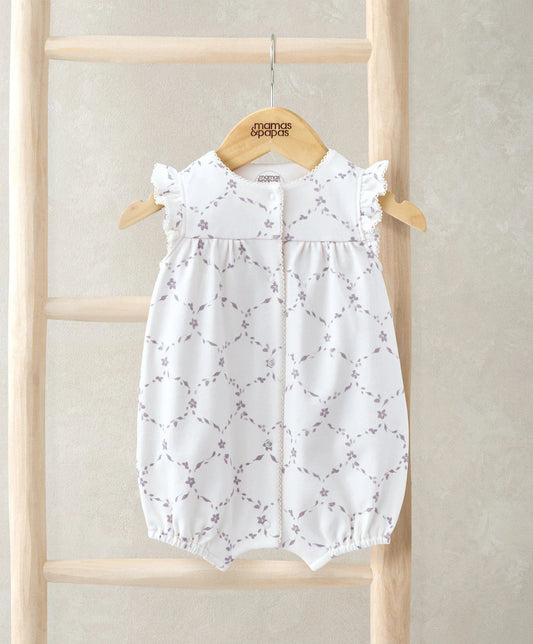 Short Sleeve Embroidered Lace Dress - Floral Print
