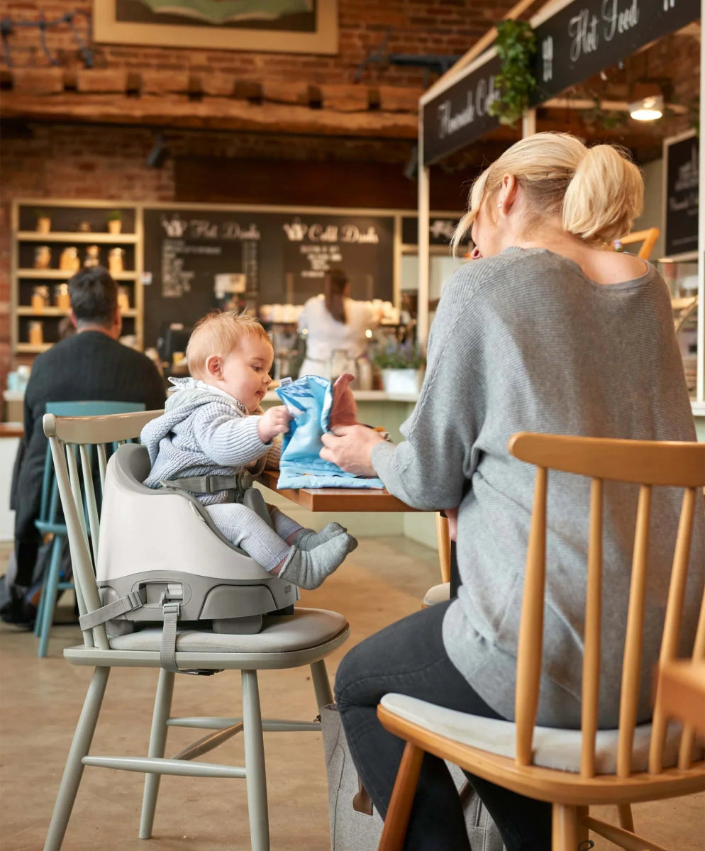 Once your little one has mastered supporting their own head, our Baby Bug 3-in-1 seat gives them a safe place to sit and play, so you can keep your hands free for other things. Packed with removable and adjustable features, it even has a play tray with colourful sensory toys that’ll keep their little hands busy. The super-stable base means you can place it safely on the floor whilst they play, and it can be easily used as a booster seat for weaning. And once they’re old enough to join you at the table, Baby Bug can be strapped to a dining chair. So, you won’t need to upgrade when it’s time to embrace those fun-filled family meals with your toddler.