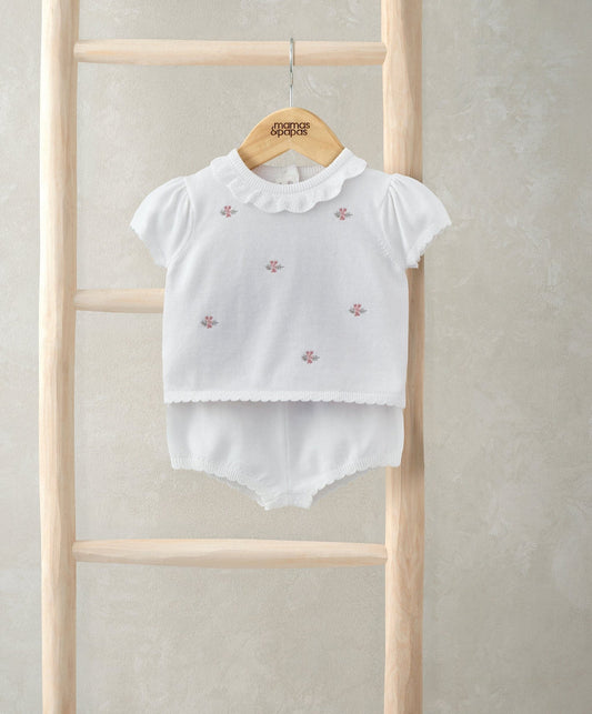 Embroidered Knit Top & Shorts Set (2 Pieces) - White