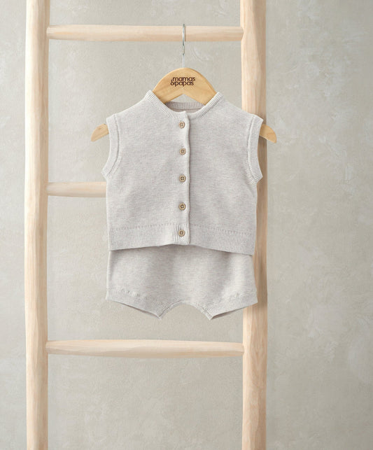 Ribbed Knit Cardigan & Shorts Set (2 Pieces) - Sand