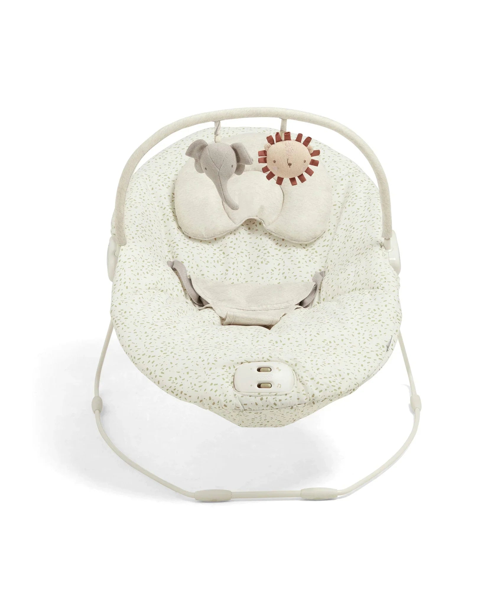 Bring a touch of Safari fun with the playful wilderness-inspired Born to Be Wild Capella bouncer. A padded seat, safety harness and head-hugging pillow for extra support around their head and neck, offers you somewhere safe and secure to seat your baby when you need to be hands-free. Entertain them with its musical feature with 4 melodies and detachable toy bar with 2 interactive toys; soothe them through the gentle vibrating seat motion or let baby enjoy their own bouncing. Capella’s compact design is easy to store away and its removable cover wipes clean quickly and easily. Co-ordinating beautifully with our Born to be Wild nursery interiors collection, this new Capella features the same calming colours, nature-inspire prints and charming wild animal characters so you can stylishly curate their nursery. Suitable from birth to 6 months approx.