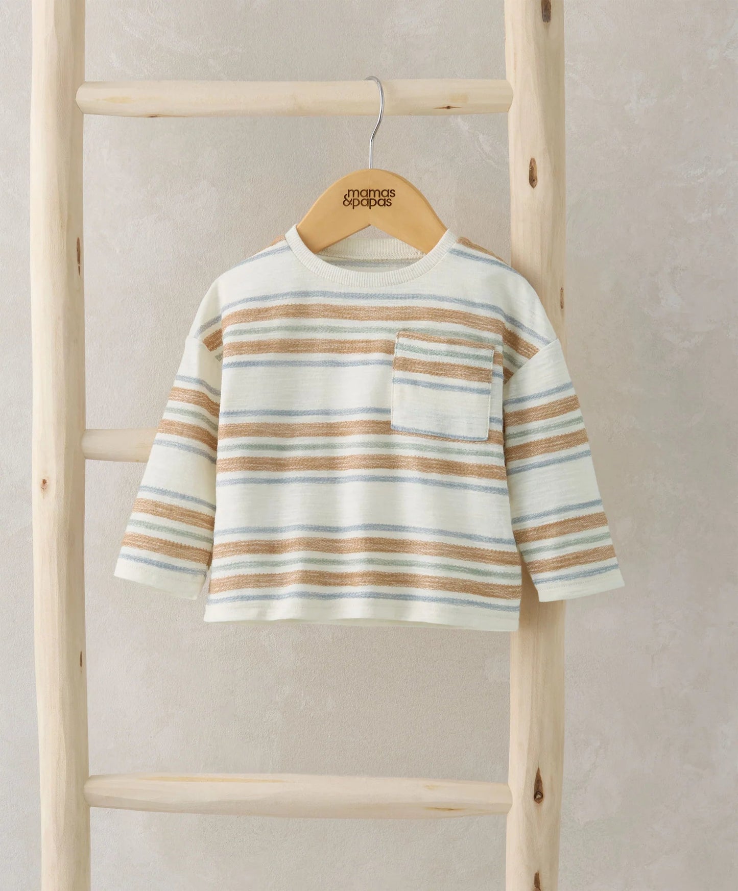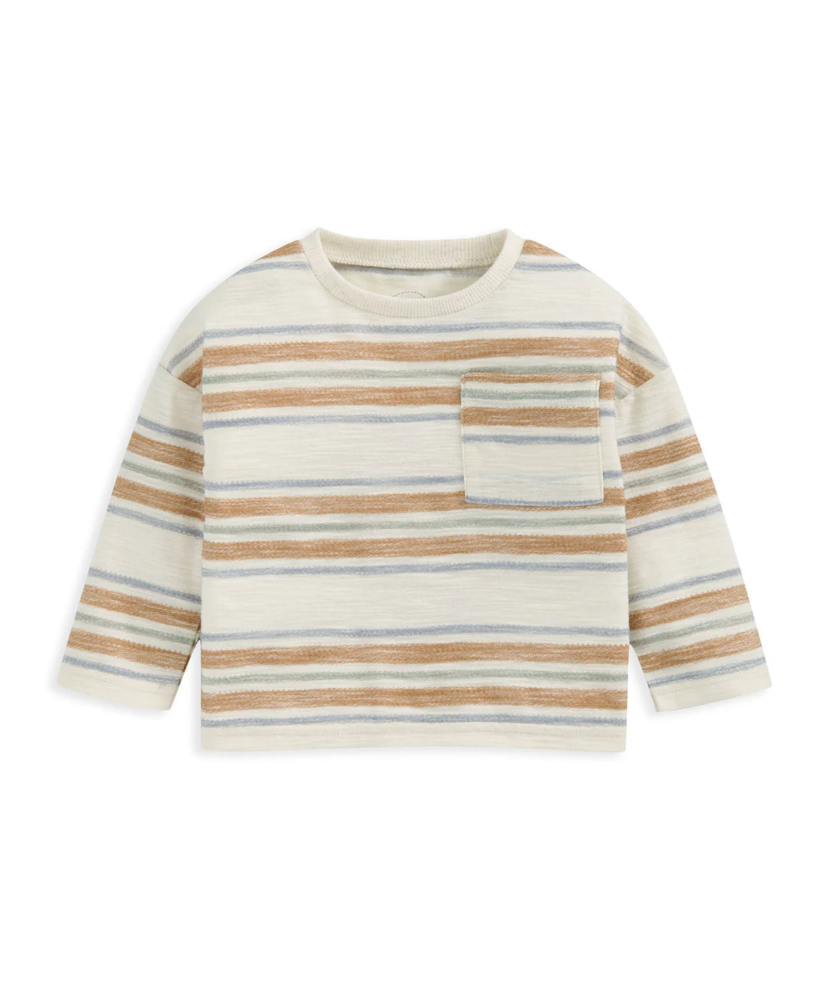 T-shirt rayé à manches longues avec poche plaquée. Fabriqué en jersey 100 % coton texturé.