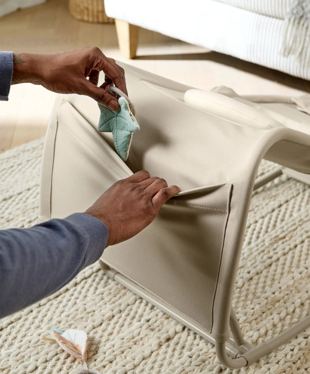 Conçu pour faciliter la vie des parents, Tempo est suffisamment léger pour être facilement déplacé lorsqu'il n'est pas utilisé ; son assise est entièrement amovible et lavable en machine ; et il est même doté d'une poche pratique, idéale pour ranger les petits objets, comme les langes, les lingettes et les petits jouets, hors de portée de bébé. Et bien sûr, nous avons pensé à l'esthétique de Tempo chez vous.