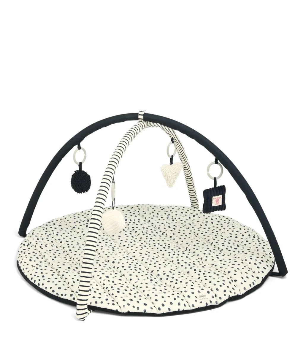 Featuring high contrast black and white patterns that help stimulate baby’s senses and support visual development, this activity-packed playmat will keep curious cubs wildly entertained. Emblazoned with bold graphic and animal prints by independent fashion brand Another Fox, its super-soft base makes it perfect for both tummy time fun and supervised chill time. Baby will love discovering a world of sounds, patterns and textures with visually stimulating and tactile fabrics, plus crinkles, rattles, squeakers and soft hanging toys to explore.