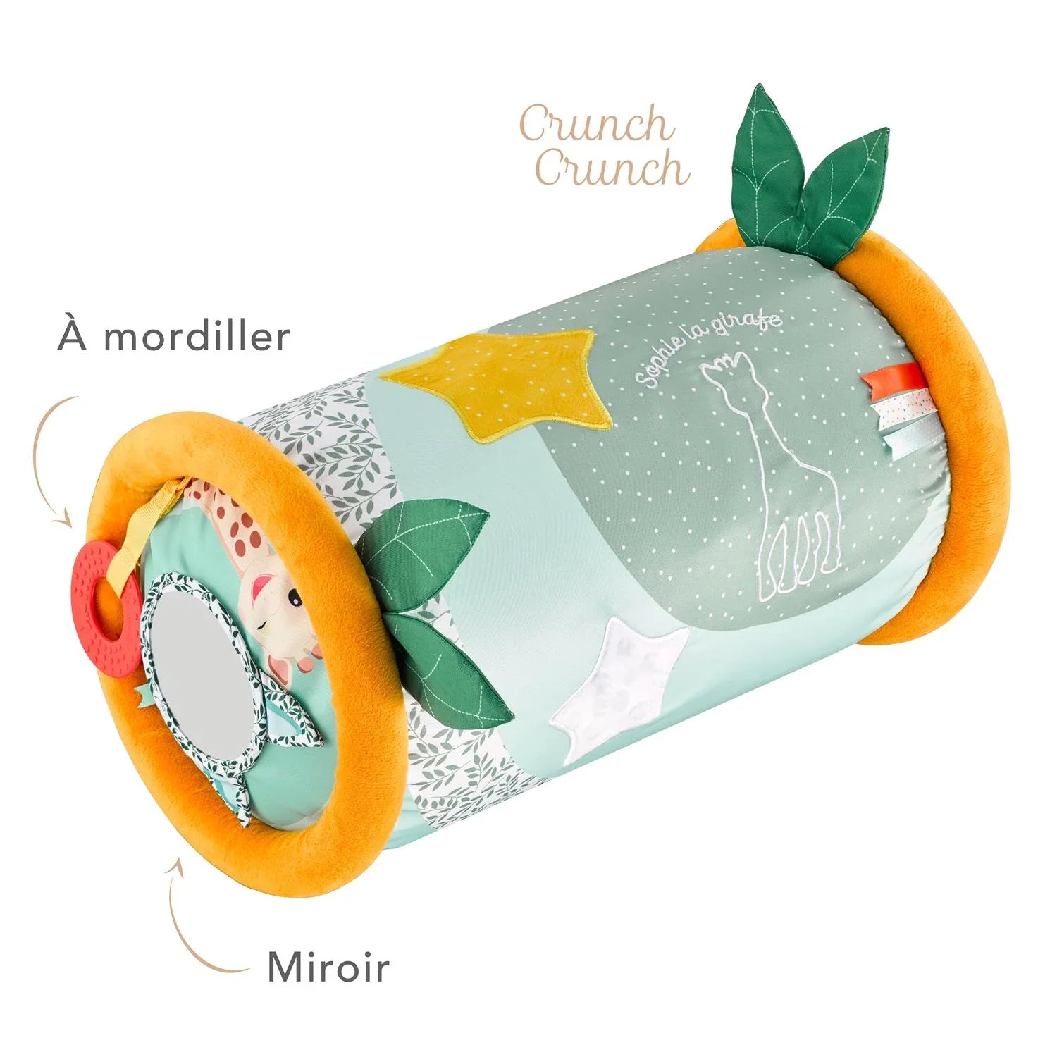 Climb, roll, or ride it to develop motor skills and balance . The Rollin' is a multifunctional toy : mirror, rattling balls, crinkly paper, textured ring… Everything is designed to awaken baby's senses .